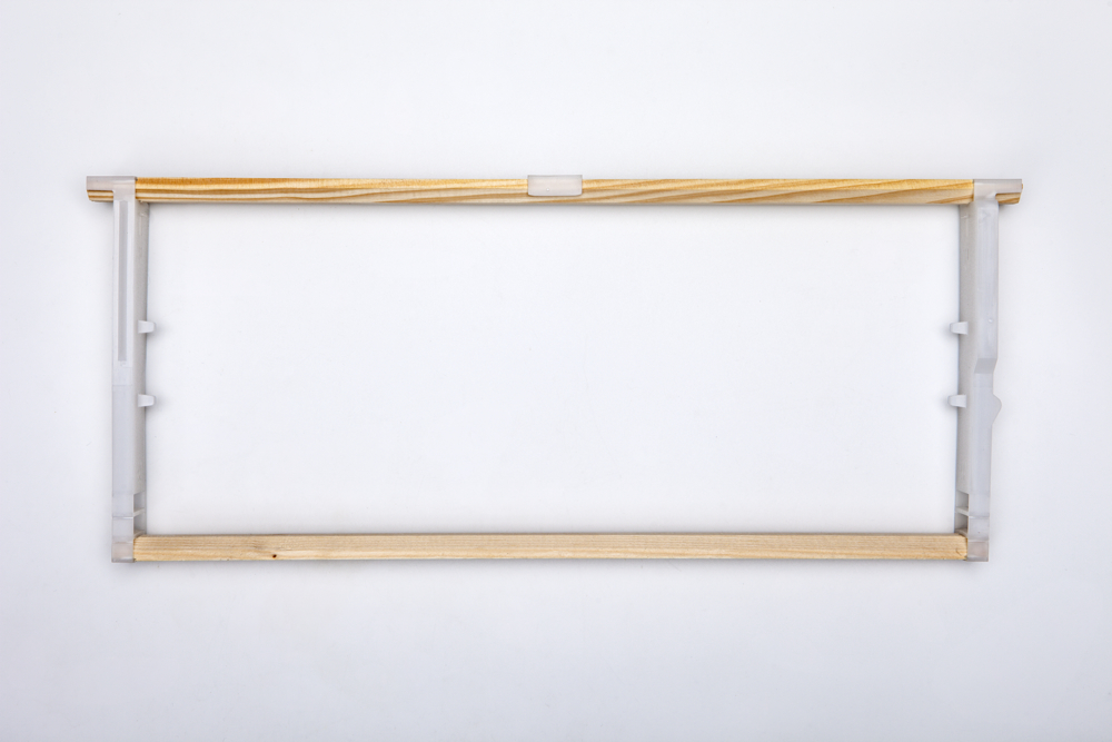 - V případě potřeby se horní pololoučky uprostřed zajistí plastovou sponou. Jakmile včely rámek vystaví, je vhodné sponu odstranit a lze ji opakovaně použít.